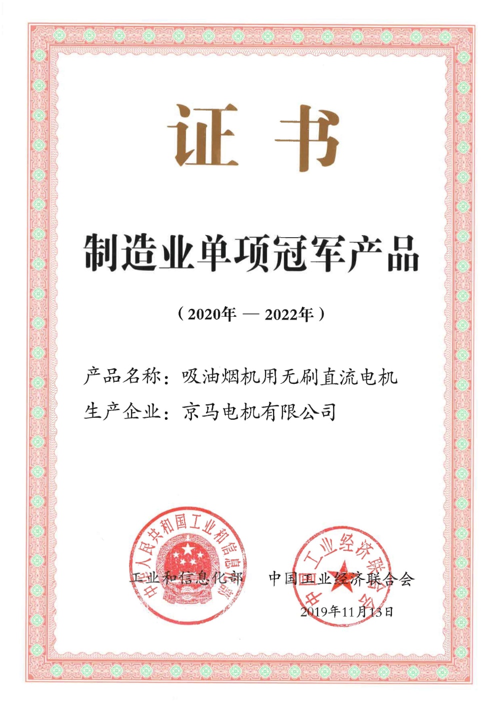 獲得工信部制造業單項冠軍產品認定;